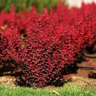 Барбарис Тунберга Оранж Рокет - это замечательное растение, которое широко используется ландшафтными дизайнерами для оформления территорий. Его привлекательный внешний вид и полезные ягоды, которые можно использовать в кулинарии и медицине, делают его особенно ценным. Молодые кусты имеют ярко-оранжевый цвет, но по мере взросления становятся темно-красными. Именно этот сорт чаще всего используется для украшения участков. Он имеет медленный рост и колоновидную форму, с прочными ветвями, направленными вверх. Кустарник может достигать высоты 100-120 сантиметров. Листья этой культуры среднего размера, овальной формы и гладкой текстуры. Листья меняют окраску в течение сезона - они зеленые весной, желтые и оранжевые, а к осени становятся бордовыми. Цветки "Оранж рокет" красного цвета и небольших размеров. Они начинают цвести в конце мая и продолжают свое цветение до начала июня.