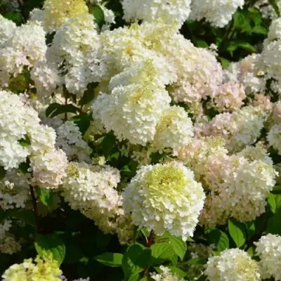 Диамантино отличается жесткими побегами и невероятно ранним началом цветения, которое не прекращается до сентября. Крупные, плотные, округлые соцветия — настоящее зрелище! Их цветовая метаморфоза завораживает: они распускаются необычными желто-зелеными оттенками, затем вспыхивают чистым белоснежным сиянием, а к осени, словно румянец, приобретают нежный розовый оттенок. Эта способность к трехкратному изменению цвета делает гортензию метельчатую Диамантино высокодекоративной в течение всего сезона.