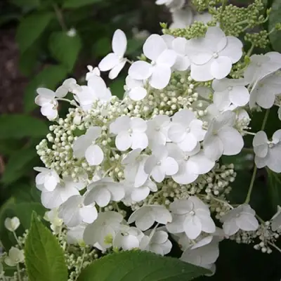 Гортензия метельчатая Прим вайт описание которой подчеркивает изящество формы, обладает слегка плоскими соцветиями длиной до 30 см. Цветки элегантной формы изначально имеют чистый белый окрас, но ближе к осени начинают нежно розоветь. Важной особенностью растения является его способность к повторному цветению, что делает его фаворитом для одиночных и групповых посадок. Соцветия состоят из цветков двух типов, создавая ажурный и легкий образ, который идеально вписывается в ландшафт любого загородного участка в Беларуси.