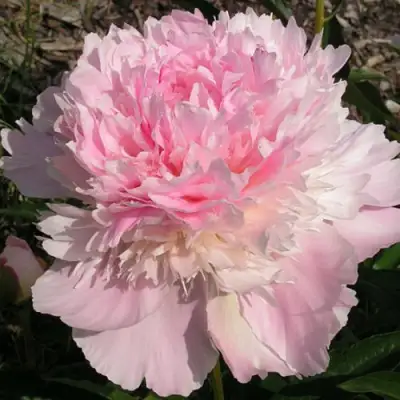Цветки заслуживают особого внимания. Они крупные, достигают в диаметре 17 см, и относятся к махровым. Их нежно-розово-сиреневая окраска с бледным оттенком придает цветкам изысканный и утонченный вид. Широкие лепестки создают великолепный общий облик цветка, излучающего сильный, чарующий аромат, который наполняет сад.