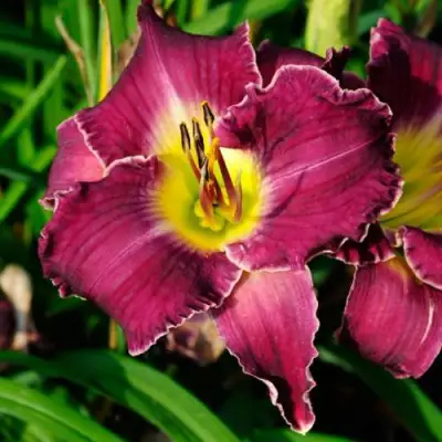Цветки лилейника Беттилен заслуживают особого внимания. Простая форма цветка с крупными размерами не оставит равнодушным ни одного любителя садоводства. Диаметр цветка составляет до 14 см, а основная окраска – яркая фиолетовая с насыщенной пурпурной ноткой. Каждый цветок дополнен зеленым горлом и белой каймой, придающими дополнительный шарм. Гофрировка лепестков создает впечатляющий визуальный эффект, а легкий аромат делает этот цветок желанным дополнением к вашему саду.