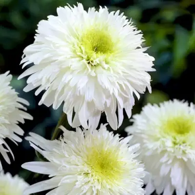 Махровый нивяник Фиона Гогхилл — находка для тех, кто устал от скучных форм и ищет в цветах не только красоту, но и выразительность. Этот сорт удивляет с первого взгляда: крупные, густомахровые соцветия словно вылеплены вручную — лепестки слегка подкручены, многослойные, с мягким кремово-белым отливом. Никаких агрессивных контрастов — только благородный баланс фактуры и нежности.