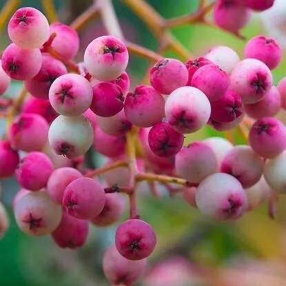 Плоды рябины Пинк — это отдельная тема для восторга. Они обладают округлой формой и порадуют вас прекрасным сочетанием белого, розоватого и красновато-розового цветов, что делает их украшением не только сада, но и вашего стола. Ягоды размером меньше среднего радуют своим кисло-сладким вкусом, который напоминает бруснику, а их сочная мякоть оставляет незабываемое послевкусие. Вы можете наслаждаться свежими ягодами или использовать их для приготовления различных заготовок: варенья, компотов, соков и многих других блюд.